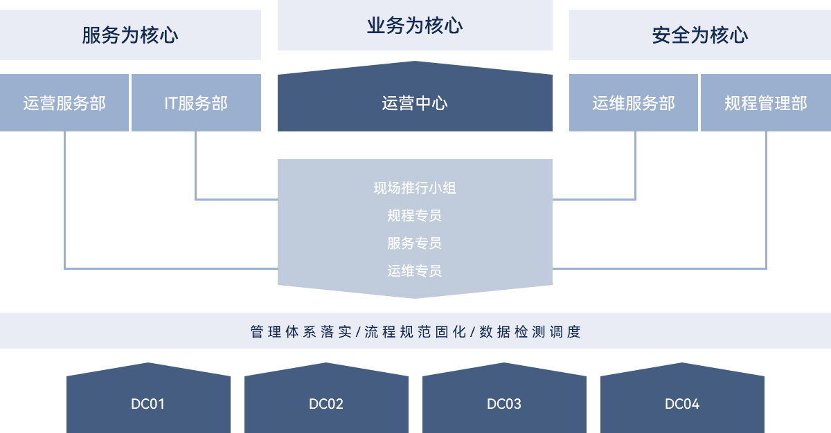 德衡數據致力于推動數據中心行業的運營管理體系發展和配套技術手段研發應用落地,核心團隊包括高級管理者、架構師、運營經理、運維經理、規程管理,以扁平化模式面向應對多數據中心管理模式,通過敏捷高效的專項小組確保各地數據中心的運營模式和質量保持一致性。